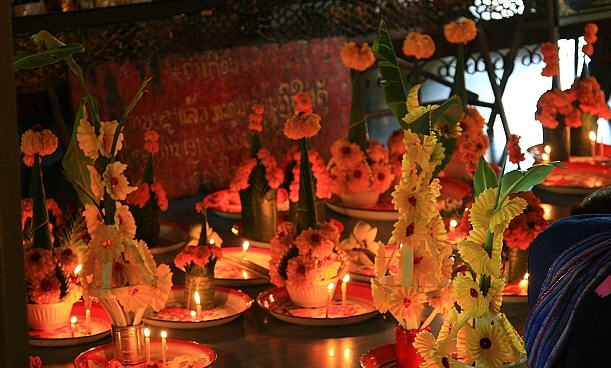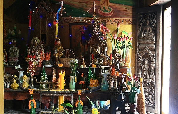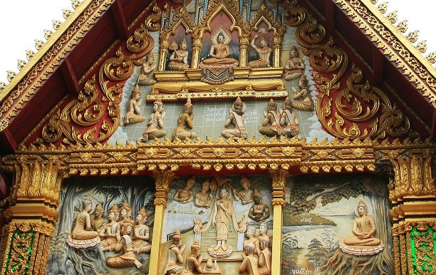 有覆盖“西姆”(sim,意为“福地宝窟”)的讲经殿,在正门处有琅勃拉邦澜沧王国国王西萨旺冯的御座。