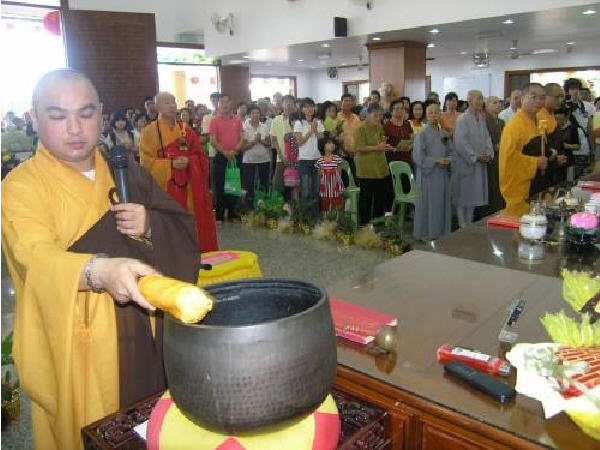 傳孝長老(左2)與眾法師為佛像主持開光儀式,佛友及善信們踴躍出席觀禮。