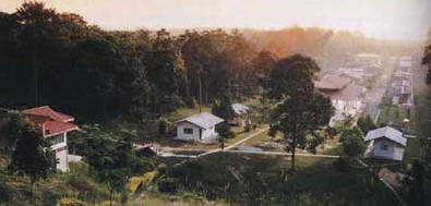 禅院远离都市喧嚣,驱车前往,须经过一个油园。颠簸的小路限制了车速,也让人慢慢的放缓了平日急促的步伐。树荫叠叠层层,虽是烈日当头却丝毫不觉暑意。大约15分钟後,车子穿越了油棕园,顿时令人有“重见天日”之感,禅院即现眼前。