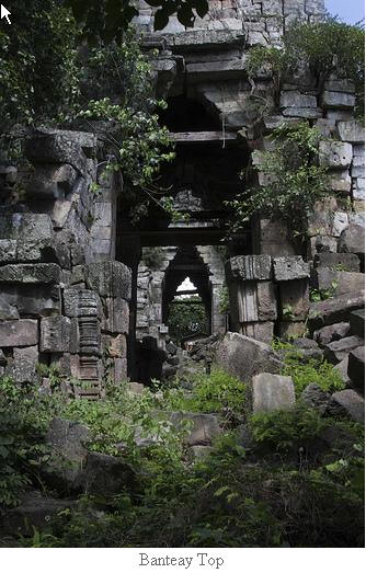 班特清麻寺东南将近14公里处是Banteay Top(军事要塞)。尽管只是一个区区小庙,却自有其独特的气韵。只见稻田之中一座残破的塔,塔似乎被部分重修过,看起来摇摇欲坠,仿佛一根瘦骨嶙峋的手指指向天空。