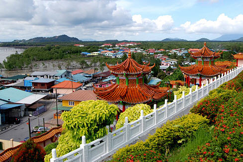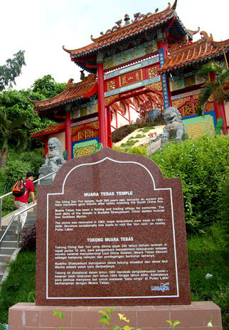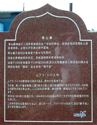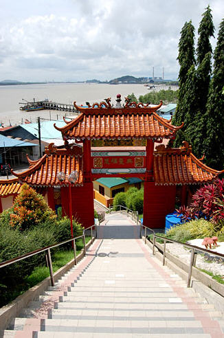 我初临此地,在山丘下仰望山景,甚觉惊艳,此处真是好地方啊!难怪故人会说此处风水绝佳,并选择在此安奉神明。我和家人信步踏上看起来很高的梯级,越过 美丽的亭子,来到一处可登高望远的山坡上,眺望远处的景致。遥想当年繁忙的港口,辛勤的人们,汲汲营营讨生活;每逢佳节,大伙来到庙里烧香祈求风和日丽, 国泰民安,向往着美好的生活。村子里的马来同胞也向往着和平安祥的生活,尊重包容各自的信仰。啊!这是一幅多美的景色啊!