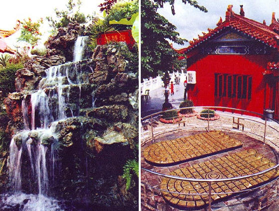 庙的左侧有一对佛足,金碧辉煌,佛足上砌上了108个佛教吉祥物。这里还有一个智慧泉,种上养眼的植物。庙里善信们点香祈福,也有像我这样的观光客,随处游览拍照。