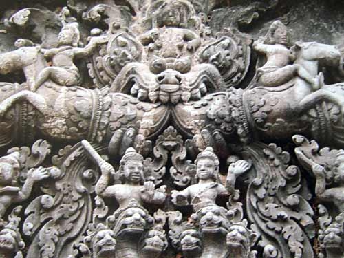 罗洛士遗址群中的神牛寺得名来自于庙前的三座神牛南迪的雕像。神牛寺是一座家庙,有前三座后三座共六座的塔楼。前三座的塔楼比较大,中间供奉的是吴哥的开国君主,而南北两座分别供奉的是当时国王的父亲和祖父。后三座塔楼则分别是供奉他们的妻子。当父母祖先有了位置,那历史也就有了传承。从神牛寺开始,吴哥创造了相当辉煌的文化。也因为有这里,才有吴哥那么壮观的建筑和雕刻。