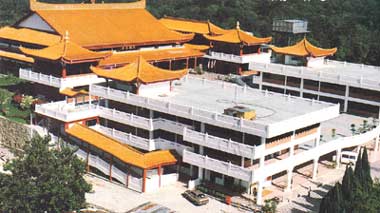 为参加共修活动者的住宿著想,该寺也分别建有男女两座寮房,并在正中保留一片广场,这里视野辽阔,倚栏远眺,可见云顶高原的点点灯火。