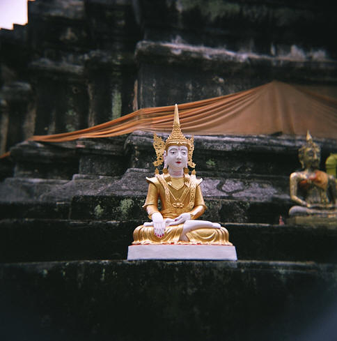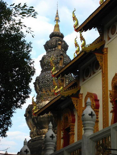 Wat Ku Tao, the temple where this remarkable chedi stands, is located between the Old Chiang Mai Municipality Stadium (sanaam gila gao) and Thanon Pattana Chang Puak, about 200 metres north along Soi Chang Puak 6, on the eastern side of the lane. Little enough is known either of the temple, or of the chedi from which the former gets its present name - ku tao, the ku or reliquary of the tao (watermelon in kham muang, the language of the North). In fact, Wat Ku Tao - although now the commonly accepted name of the temple - is a long-standing colloquialism, and the more formal name given in the Chiang Mai Chronicle is Wat Weluwan Ku Tao, or the 'Temple in the Bamboo Forest with a Watermelon Stupa'. This is repeated in a bilingual inscription at the temple, where it is styled 'Wat Wearuwanaram Vihan'.