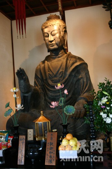 历史走过漫长的岁月,原来规模巨大的飞鸟大蓝建筑已被烧毁。现存佛堂重建于170年。佛堂内放置的主佛飞鸟大佛(释迦如来座像),3米多高,当年铸造时使用了15吨铜、30虽然有修补之痕,却仍是原物,据说也是日本最早的佛像。