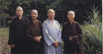 佛宝林后院有宽土地自耘 , 图右起继深`继庄`继乐及空果法师