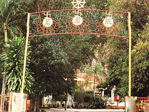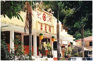 坐在菩提树下,往上凝望,建筑物上写著三个红色大字「般若岩」,后面便是高耸的石壁。般若岩的建筑物依著这座山壁而建,山壁成了房子的其中一面墙,无须任何 刻意的美化,钟乳石已展现它的自然面貌。比起怡保其他巳发展成旅游胜地的洞穴道场,这里少—了人工的雕塑,多了一分脱俗的宁静。