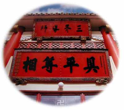 大雄宝殿後的山腰建有三宝殿。殿分两层,地下是慈航普渡,奉有观世音菩萨和龙女善财二像;二楼是普光明殿,正中供奉西方三圣像,联曰:“九品莲花狮吼象鸣登法座,三尊金相龙吟虎啸出天台。”天花饰有金龙,龙头与一抓珠金爪悬空垂出,龙口更吊着水晶灯,栩栩如生。两侧分奉两座不同造型的观世音菩萨像。