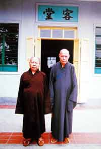 第二代住持圣一法师(左)与