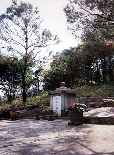 寺前山门横匾写有“十方道场”,门联书上“後枕高山凤岭巍巍云盖顶,前临大海曹溪滚滚水来潮。”而悟明长老的墓塔则筑於寺前右方,寺中人常往打扫,献上鲜花。