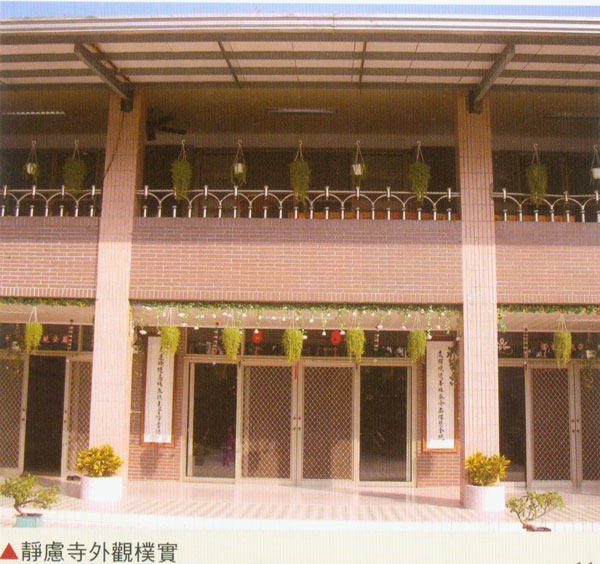 静虑寺位於风景秀丽的嘉义县中埔乡滨水村,环境雅静为修行之理想道场,於民国87年启建迄今,当年曲师父带领师兄师姐们在烈日下一砖一瓦箪路蓝缕之开创,始有今日舒适优雅之修行环境。