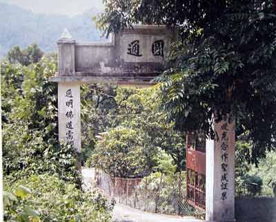 山门旁树繁叶茂,穿过门後小径,即达寺门