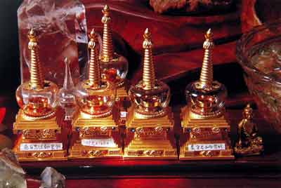 由於种种因缘关系,住持宽济法师供养了不少大德高僧的舍利。据其介绍,计有虚云、太虚、印光、慈舟、弘一、倓虚、乐果、广钦以及大宝法王等分别供养在舍利塔中。坛上立有一原木雕刻的慧积金刚像,神韵皆精,实为难得一见。