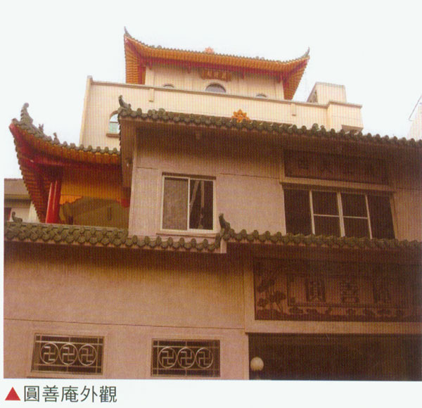 後因年久朽损,屋况不佳,尔後修补屋顶,使不漏雨水。民国62年购得本庵後方之土地,次年将木造屋移至後面,做为香积寮、斋堂及寮房:并将木造屋原地兴建为圆善庵,於64年工程圆满落成。土楼为客堂及僧众寮房:2楼为大雄宝殿,供奉释迦如来。