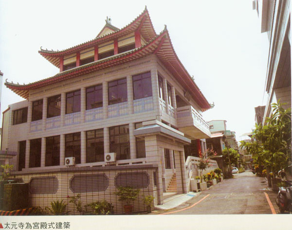 太元寺旧称“太元堂”,属龙华派汉阳堂派。相传乾隆年间,嘉义的斋友李芳义、董丽水、沈晋筹等人,正北门内建立太元堂。道光26(1846)年,龙华派李普算在仁武境买瓦厝l座5间并埕,喜愿为斋堂,号“太元堂”。