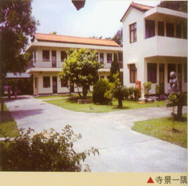 全寺采黄瓦白墙建筑,大殿供奉阿弥陀佛,左右两侧并设法堂、客堂、斋堂、寮房、图书馆、讲堂等。