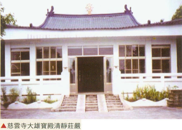 大雄宝殿为挑高土层之钢筋水泥建筑,主供释迦牟尼佛:後殿供奉观世音菩萨,两旁并有厢房及客厅等。