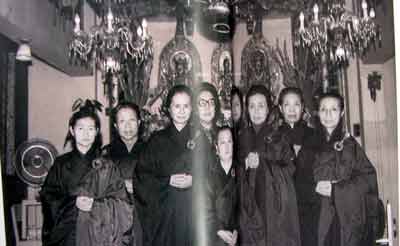 安乐精舍是一座村屋式平房,进门後为有盖小庭园,居中放有大香炉,主楼为大雄宝殿,内奉释迦佛、西方三圣,左为地藏殿,右为药师殿。大殿虽无金雕玉砌,惟清香缭绕,庄严肃穆。除大殿外,右侧是客室,客室外走廊通往後园,引向後门。精舍的几位女众,平时多闭室净修,间有信众到来上香诵经。