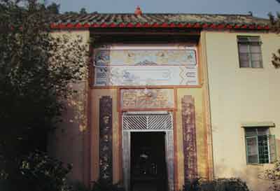 大门旁有一小径,直通旧山门,由於旧山门正面对下是老围村的陈氏宗祠,所以普光园在重修时另立新山门於园侧。由於此园为女众清修之地,一般访客,须在旧山门进出。普光园的修建,系按罗浮山宝积寺的建筑格局而成,且与锦田的凌云古寺极为相似。原因是普光园的开山住持闲云法师,追随凌云寺的开山祖妙参老和尚於圆通寺出家,後闲云法师於荃湾老围开山修建普光园时,即依其结构设计。闲云法师约於二十年代中期在普光园现址开山劈石,亲力亲为。法师1958年往生後,传人悟真法师(比丘尼)接任,悟真师原为元朗乡人,俗家姓邓,她秉承老法师的传统,清修苦行,并继续修建普光园至现时的规馍。悟真法师於1996年圆寂,现任住持为净群法师。有关过程,可参见园内慈云室之门联曰:“悟真禅师为闲云长老法徒,辅佐常住惨淡经营,并承护法大力支持,将荒芜多年之庭园殿宇重兴扩建,焕然一新。明常目击。”