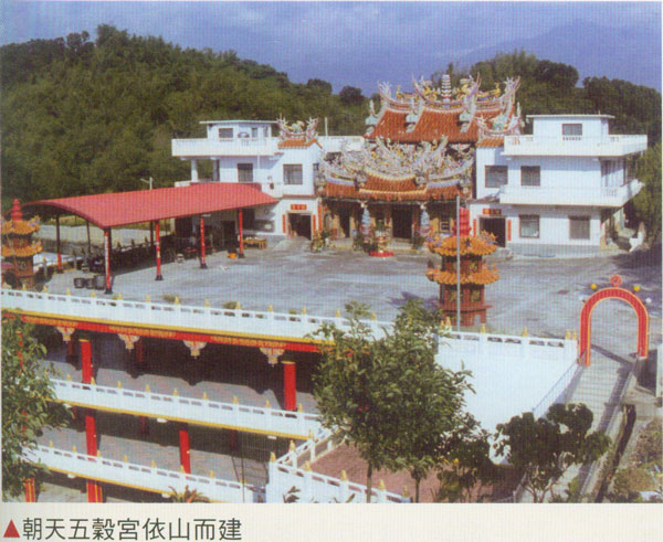 朝天五谷宫尊奉儒、释、道三教,历经黄增福、黄福荣、张阿宝、张信昌、邱勤龙、李荣通、陈秀彩等7任堂主及十方善信茹苦含辛、克勤克俭的规划经营,才有今日格局堂皇,宫貌巍峨。