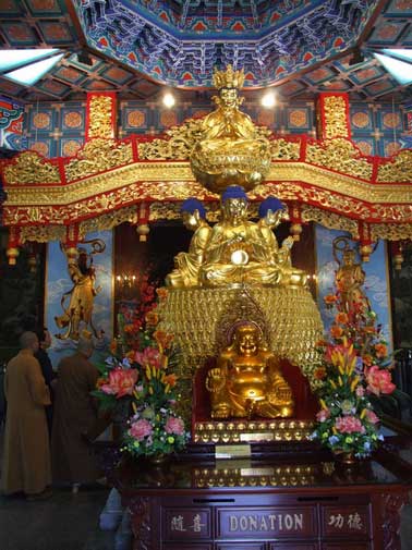 占地十二万平方尺的西方寺1962年购地,1970年动工兴建,1973年落成。仿中国宫殿式建筑,楼高二层,顶盖黄色琉璃瓦,巍峨雄伟, 庄严壮丽。上层大雄宝殿,供奉西方三圣,左右辅以文殊和大行普贤菩萨,最左供大慈大悲观世音菩萨,皆名家木刻法相,外配以飞檐雕花精致佛龛。殿内墙壁镶嵌大理石,刻龙天花板,雕梁画栋,琳琅满目,瑰丽堂皇。两侧供十八罗汉石拓圣像,栩栩如生;又供奉明朝古观音菩萨造像精美,为中国最大型景泰蓝观音像,甚为稀有。楼下弥勒殿,供奉大肚弥勒菩萨,法相庄严,慈心广大,笑口常开,问讯顶礼,皆大欢喜。