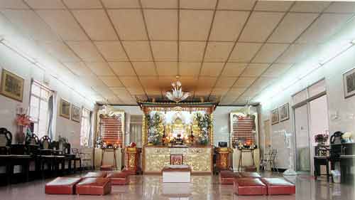位处市区,距九龙塘火车站只步行十分钟路程的鹿野苑,历史由来已久。今天的鹿野苑主要由大雄宝殿、藏经楼、功德堂、斋堂和客堂等组成。大雄宝殿内供奉着三尊法相庄严的佛像,另奉观音菩萨像、韦驮像和伽蓝像。藏经楼内则藏有多套大藏经。客堂内的佛像,宝殿里的释迦三尊、法器,藏经楼的经书,都与寺院一起经历了近七十年的变迁。