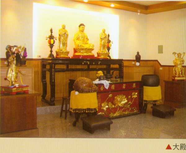 现代式之建筑,虽无华丽的外观,但朴实中更具庄严性,大殿供奉本师释迦牟尼佛,後殿供奉西方三圣。