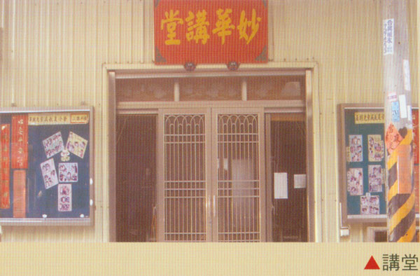因属都市道场,为一栋钢筋水泥连栋透天3层之建筑,另购入对面透天1楼铁皮屋作为讲堂使用。