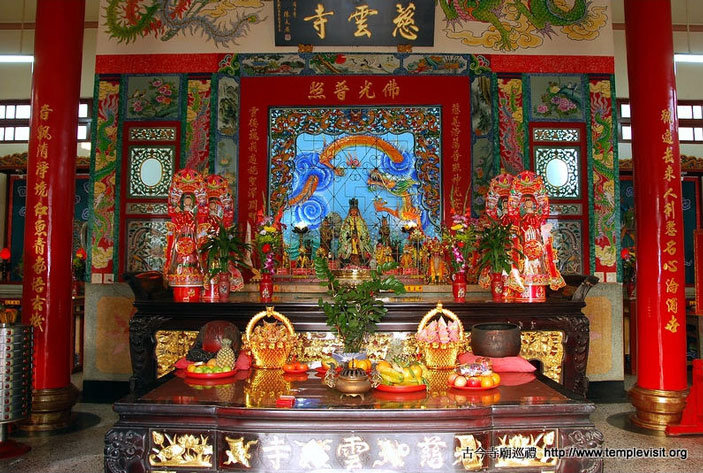 据老一辈的乡亲说来自圆潭过沟,在古早时,庙宇并不多见,神佛雕像多为民间百姓家中之祭拜神物,百姓远行或移居时,多会将家中或乡里祭祀之神祗移请一同伴行,以求路程平安,因此,观世音菩萨遂随居民迁移而落脚于旗山。当初慈云寺位置是经观世音菩萨指示,于庙现址之后方(今该地已兴盖水泥砖造房屋)之小庙,经信徒热诚捐献始移建于现址。资料来源