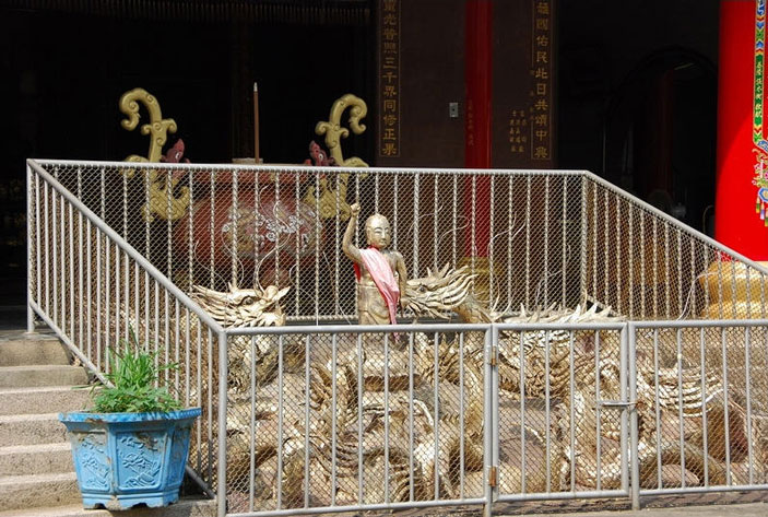 清云寺位于高雄县旗山镇的城隍庙旁 主祀如来佛祖。正殿中供奉三宝佛,中为释迦牟尼佛,右为药师如来佛,左为 阿弥陀佛。正殿二楼左右各一尊齐天大圣护法,左殿为斗姥及六十太岁星君,右殿福德正神。作者:“古今寺庙巡礼”编者