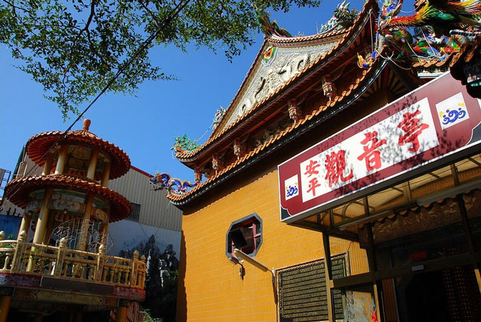 位于观音街的观音亭为安平公庙之一,主祀观音菩萨,陪祀十八罗汉、土地公、齐天大圣、财神爷等神祇。安平的观音亭始建于西元一八二六年道光时期,乃安平地区渔民由大陆分香过海来台奉祀,至一八七一年同治时期修建一次,西元一八七五年光绪年间落成,民国十三年管理人周金普并发起修缮一次,民国四十五年由吴水罐继任管理人七十九年十一月落成。