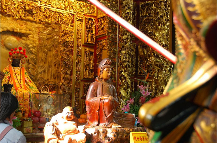 观音亭主要供奉虽然是观世音菩萨,但无论格局或仪式都较倾向于民间信仰形式。重建之后的观音亭造型美仑美奂,香火鼎盛,灵验无比,每年三次观音圣诞皆席开两百桌以上,信徒座无虚席,为安平地区民众信仰的中心。观在无息拔百千万苦慈悲化劫音凌虚空随应消除业善信迎祥这是题在大殿入口虚的诗偈,显示观音菩萨的信仰在安平一带流传的久远