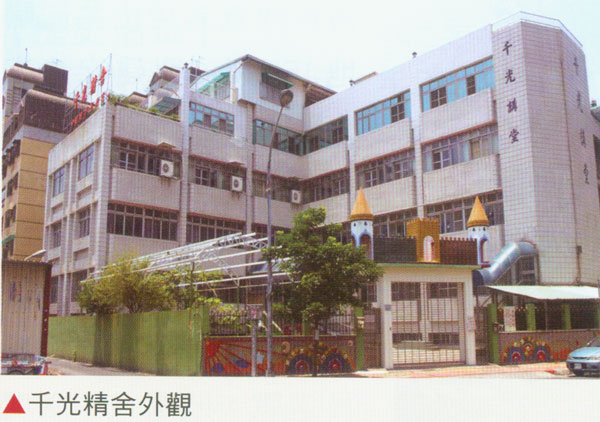 千光精舍为4层楼L型建筑,1、2楼为幼稚园。3楼为大殿,供奉观世音菩萨。4楼为大寮、斋堂、客厅、及住众寮房。