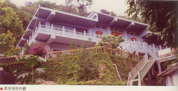 一进山门,即见弥勒菩萨,一副“笑开天下古今愁”的大量。大殿是一座传统民房的建筑物,背山面海,供奉释迦车尼佛、观世音菩萨、地藏王菩萨。因寺地不能集中,清凉净苑之大殿、三圣殿也因此分为两处,必需穿梭往返。大殿旁有小径,顺著石阶而下,再往坡上的铁阶而上,即是三圣殿。三圣殿依山而建,楼高2层,上层供奉西方三圣,即阿弥陀佛、观世音菩萨、大势至菩萨。下层是法雨堂与寮房。法雨堂内阅览室是提供大众看经阅读的地方。