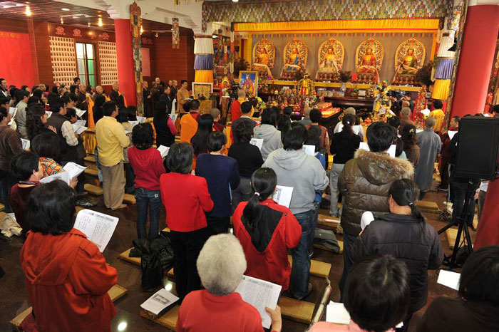 翌年再假台南市德化堂,恭请上师传法,皈依者益众,如邵禹铭、许景重、洪池、苏子杰、匡佩华等居士皆是。后复洽大观音亭为法会场所,求法修法者更众,新旧子弟达一千余人。众师兄遂感假借道场,终非久计,乃有兴建永久道场之议。于是共解义囊得百数十万元,购得台南市小东路土地二百坪备作台南道场建筑之用。及至五十八年十一月一日重庆寺管理人王天恩居士等礼聘