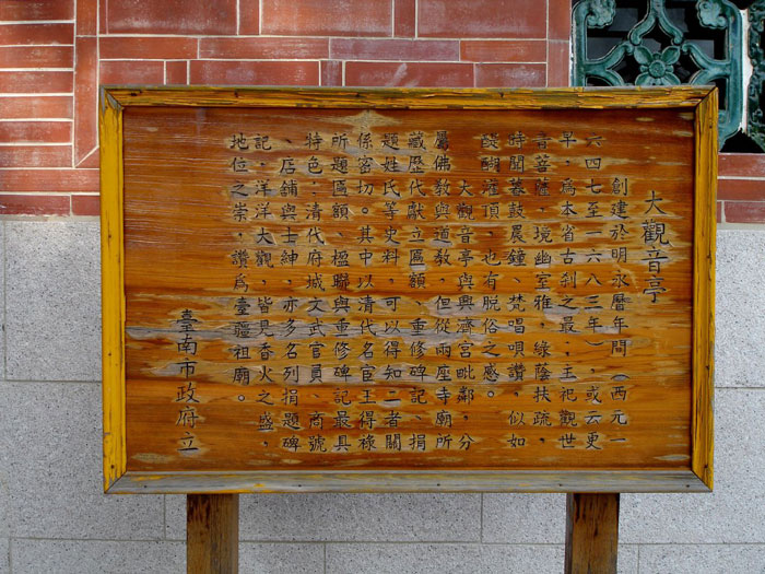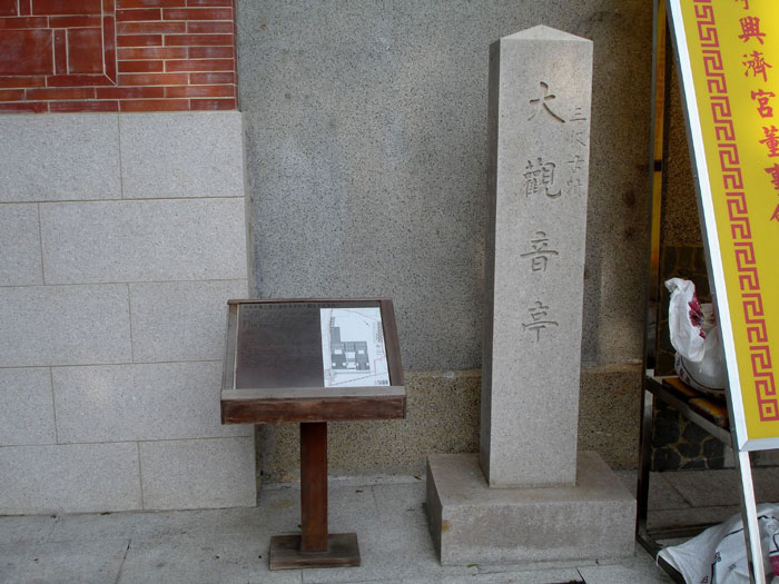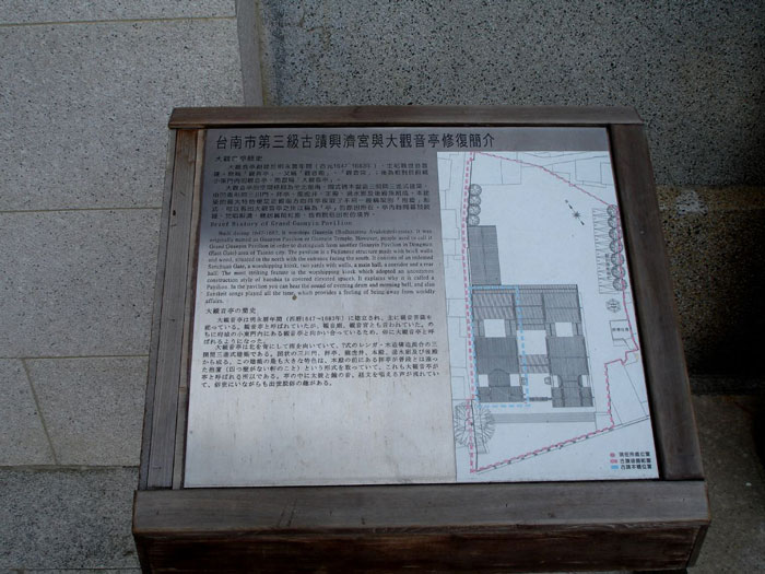 陈文达《台湾县志》:“观音亭伪时建,中奉大士,左右塑十八罗汉。康熙三十二年,居民重修,并建后堂。”“大道公宫,一在观音亭边,伪时建。”
