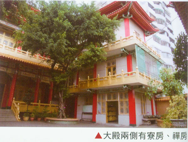 后进一楼系地藏殿,殿前置一座精巧细致的香炉。由铜铸成,旁亦有两只可爱的小狮分侍。殿内案上奉祀地藏王菩萨法相庄严。殿庭中栽植各种奇花,直上三楼,形成空中花园,每逢花季,百花争妍,甚为美观,省政府农林厅及民政厅官员亦曾来考察摄景。于地藏殿接连东侧为大寮及斋堂。二楼为图书室、藏经楼。三楼为圆通宝殿,供奉著享誉中外,全省最大木雕千手千眼观世音菩萨圣像。前后殿中间设有天桥相迎,色彩全部以白色为主,庭院植种奇花名草,红绿互映,相得益彰,幽雅自成一超然世界。