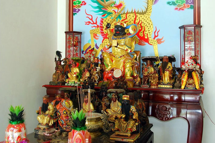 当时,赖氏祖先携带菩萨追随过洋渡海来台。自安平港登陆而后选定井子埔建屋安居菩萨在此当中。