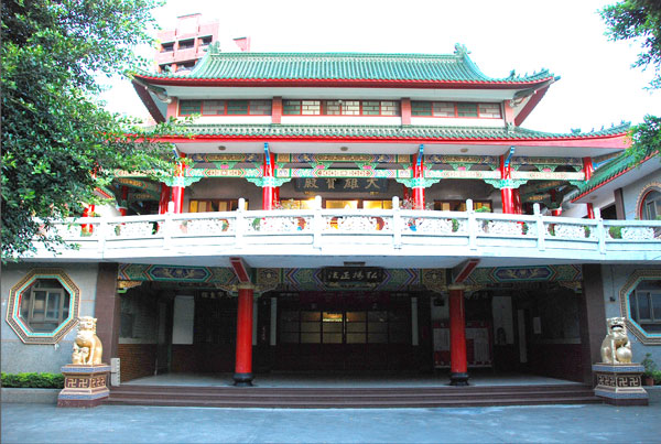 大雄宝殿前庭栽种的盆景,罗列井然有序,显然师父用心照料的结果,加上左右各有一座凉亭,俨然护法尊者,亭顶的仙人、麒麟彷似护法身上的头冠樱路,那黄色琉璃屋脊,在阳光下正灼灼闪耀,发出让人不能逼视的光芒。
