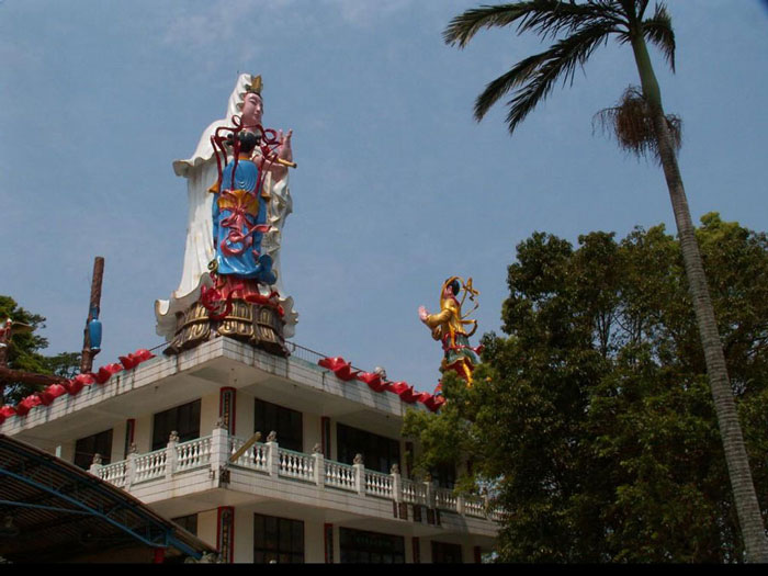 在蜿蜒迂回的山路行进,到处可以看见为庆祝观音菩萨开光而来的人潮,由于山路新铺上柏油,车行十分顺利。从山下至“乐善堂”约在廿分钟车程。