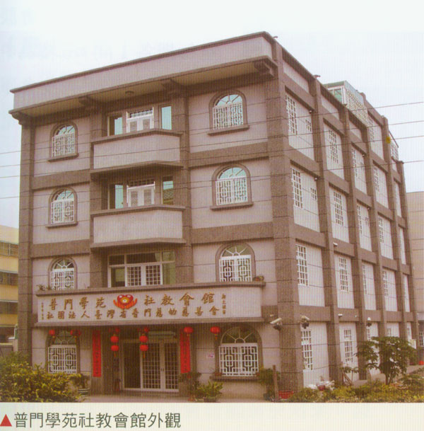 新建敔用之“普门学苑社教会馆”,为一般房舍建筑形式,5层楼层,1楼提供做为“普门慈幼慈善会”会所:2楼“法华堂”为社教活动讲堂,内供“护儿观音”;3楼“闻思寮”、4楼“会心寮”每楼和式套房各6间,为社教活动学员宿舍:休闲会谈室每楼各1间。5楼为中央系统冶气机房及仓库和晒衣场。全楼设有电梯方便活动人事使用。