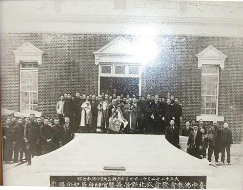 日据时代,台湾的宗教发展也深受日本佛教之影响。民国11年4月8日三由台中市佛教信徒林德林、张江中为发起人,经日本曹洞宗台湾佛教别院院主伊藤俊道、台湾总督府社寺课长丸井圭治郎指导,组织台中佛教会,筹建台中佛教会馆,为居士清修道场。12年土月大殿落成佛像奉安,聘林德林居士为住持,伊藤俊道为导师。15年日本宗务院曹洞宗付款建图书馆,并附设“爱生院”(为贫民收容所,4年後捐献给台中市委员助成会) 。16年底增购1,300坪土地扩建大殿,民国20年成立“财团法人台中佛教会馆”。
