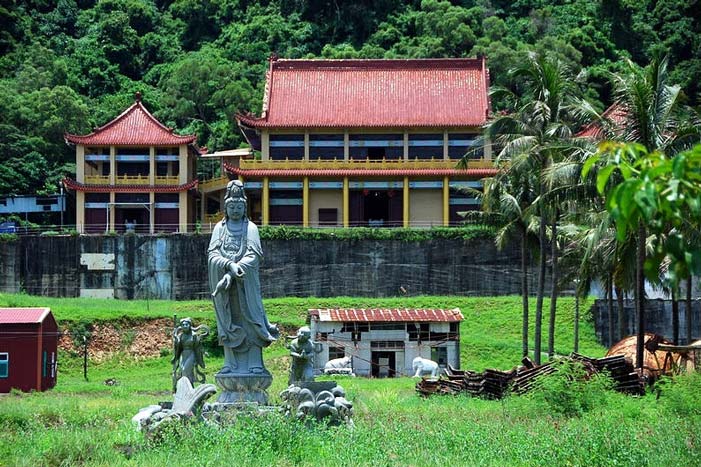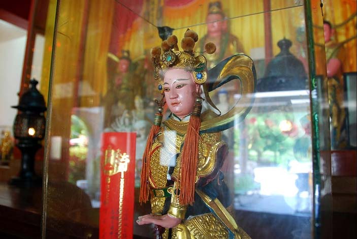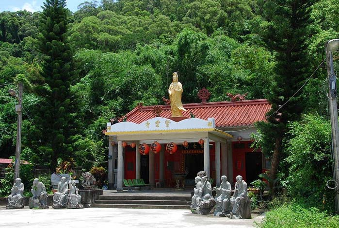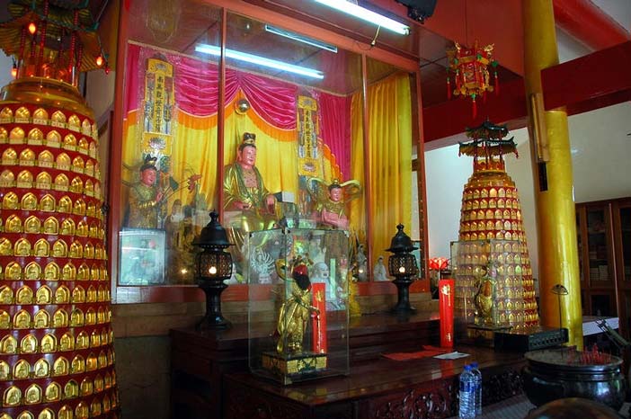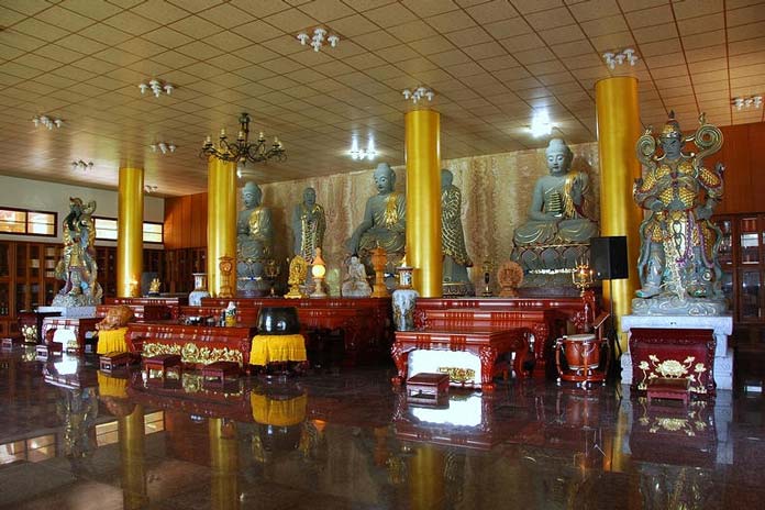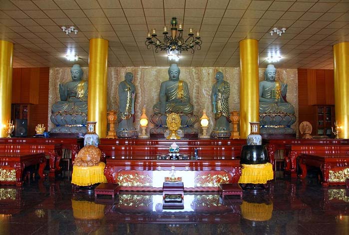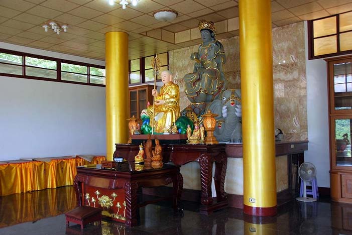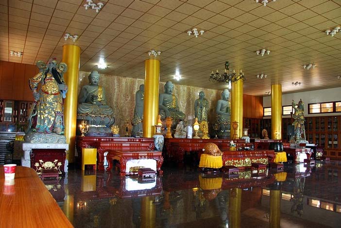 寺左方为观音殿,屋顶上塑有观世音菩萨金身,大殿主供释迦牟尼佛:并有慈恩会馆等。