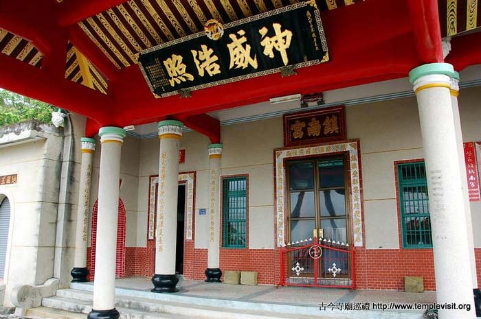 镇南宫位在恒春赤牛岭山腰下,是一座道教庙宇结合佛教的百年古寺,创建于光绪4年(1878年),主祀关圣帝君(关公),据说关公曾经在赤牛岭显灵,化成一团红火,飞走于林间,当地居民于是建庙供奉,祈求平安。赤牛岭是恒春东门外的一块台地,还是恒春八景之一,有古诗为证: “牛背躬耕归野径”,指的就是赤牛岭景色,现在也是恒春人晨昏最喜爱健行去处。