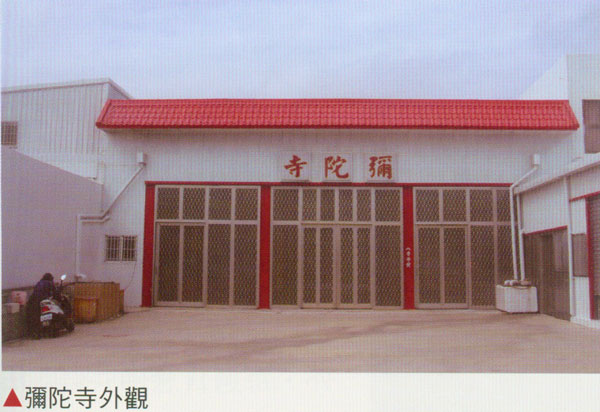 寺院为钢筋水泥平房建物,表现古朴平实:入寺前山门为钢骨兴建,题偈:“释迦如来开三乘而说法,弥陀教主列九品以渡人”;大殿供奉三宝佛,摆设桌椅经书,简单的法器配饰,衬托宝殿的庄严、清净:右厢房前为知客处、功德堂、後为膳房:左厢房前为经书佛事用品室、後为往生堂及灵骨存置处。寺前广大寺埕以供停车、种植花草等。