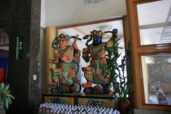 一进“慈恩寺”山门,首先迎接我们的是,笑逐颜开大肚能容的弥勒尊佛,恳切的告诉我们:仁者;辛苦了!欢迎来到佛国净土。打开心扉;笑一个。天一样蓝,树一样绿,好好品味品味。一旁土地公关爱的眼神,给人无限的温暖与祥和,给我们有一种回家的感觉,禁不住双手合十膜拜,享受片刻心灵的宁静。再前行几步,宽敞的广场映入眼帘,心胸豁然开朗。进入大殿,药师琉璃光如来、日、月菩萨、七佛药师、十二药叉罗列广场两旁。佳冬乡医生人才辈出,不禁使人沉思,生理病由医生治,众生心病、无明病呢?就只有靠药师佛了。