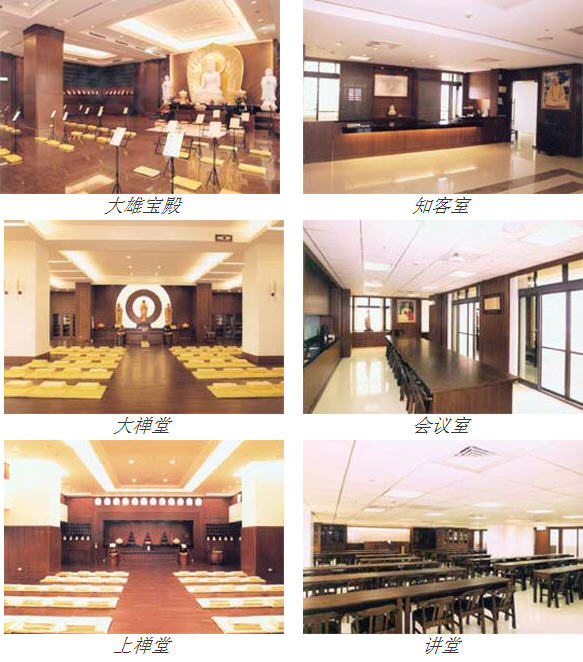 普天精舍整体规画有大雄宝殿、禅堂、讲堂及演讲厅、简报室、研习教室、展览馆等设施,兼具了禅修与社教等多重功能,不仅可让大众参与禅修课程及法会共修,并为大埔里地区提供了读书会、插花班、中西素食烹饪班、外语班,以及亲子讲座、艺术展览等活动的最佳场地。位于五楼的图书馆,藏书丰富,敞亮雅洁,开放社会大众使用,社区居民在此畅游书海,增广见闻,同时也为埔里薰添书香气息。