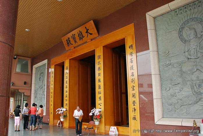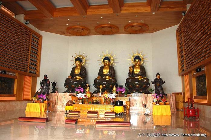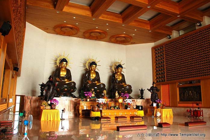 寺院建筑主体样式采用了多元混合风格,摆脱了传统北方宫殿对寺庙建筑的制约,以园林简洁明快的风格线条衬托出无比的庄严。没有繁琐的的雕刻,映入眼帘的是两幅巨大的书法木刻,无论词句或是笔工都显示出筹建单位的用心与讲究,藉由书法艺术的典雅将佛陀教化人心的主旨明显的呈现出来。后殿是供奉地藏王菩萨的地方,前殿表现西方三圣对现世的关怀,后殿则是对另一个世界的怀念与慈悲。兴建过程中遇到很多困难的地方,很多工艺技术已经失传不得已要在中国大陆制作,在佛祖与上帝爷公的庇佑下一一克服的问题,更加深了众人的信念,这是一个社区凝聚力重新激化的过程,这种过程一直存在这块土地。