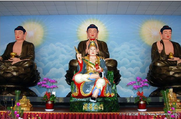 该寺祖山为麒麟山又名鸡冠山,以形如麒麟而取名,另一角度侧似鸡冠,主祥瑞之象征,又主官贵之地,往西远望,左青龙有小岗山,右白虎有大岗山,左右衔接关锁,阿公店水库为财库,为案山聚水局,主富贵绵远之意,故取名金山。尖山为祖山之文笔官贵,过鞍仔为龙过脉之处,也就是来龙入首之地,少祖山为尖山,过鞍为父母山,束气之处再起顶,龙脉经数次起伏转折,生动活泼,落脉来龙尽结,此大龙穴。 济凤佛寺为堪舆上的窝穴,书云:[十过富穴,九个窝],四周罗城紧密,案山重重入云霄,案前聚大埤,四季有泉水,明堂龙砂青龙朝拜,称为[青龙朝拜穴]。供奉主神[济公菩萨]为十八罗汉首的[降龙尊者],所以有缘得此[青龙朝拜]之大龙穴,也只有降龙的济公菩萨有此能耐居此大穴,接受万家香火。